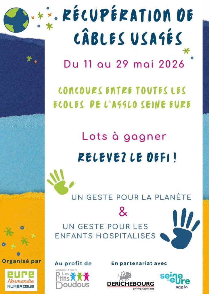 𝗟𝗮 𝗰𝗼𝗺𝗺𝘂𝗻𝗲 de POSES 𝘀’𝗮𝘀𝘀𝗼𝗰𝗶𝗲 𝗮̀ 𝗹’𝗼𝗽𝗲́𝗿𝗮𝘁𝗶𝗼𝗻 “𝗥𝗲́𝗰𝘂𝗽’ 𝗖𝗮̂𝗯𝗹𝗲𝘀” 𝗱𝗮𝗻𝘀 𝗹’𝗘𝘂𝗿𝗲 : 𝗺𝗼𝗯𝗶𝗹𝗶𝘀𝗼𝗻𝘀‑𝗻𝗼𝘂𝘀 𝗽𝗼𝘂𝗿 𝘂𝗻 𝗻𝘂𝗺𝗲́𝗿𝗶𝗾𝘂𝗲 𝗽𝗹𝘂𝘀 𝗿𝗲𝘀𝗽𝗼𝗻𝘀𝗮𝗯𝗹𝗲 ! Limiter l’impact environnemental du numérique, c’est possible… et ça commence par de petits gestes. 𝗘𝘂𝗿𝗲 𝗡𝗼𝗿𝗺𝗮𝗻𝗱𝗶𝗲 𝗡𝘂𝗺𝗲́𝗿𝗶𝗾𝘂𝗲 𝗹𝗮𝗻𝗰𝗲 𝘂𝗻𝗲 𝗴𝗿𝗮𝗻𝗱𝗲 𝗰𝗼𝗹𝗹𝗲𝗰𝘁𝗲 𝗱𝗲 𝗰𝗮̂𝗯𝗹𝗲𝘀 𝘂𝘀𝗮𝗴𝗲́𝘀 𝗱𝗮𝗻𝘀 𝗹𝗲𝘀 𝗺𝗮𝗶𝗿𝗶𝗲𝘀 𝗲𝘁 𝗹𝗲𝘀 𝗲́𝗰𝗼𝗹𝗲𝘀 𝗱𝘂 𝗱𝗲́𝗽𝗮𝗿𝘁𝗲𝗺𝗲𝗻𝘁. 𝗤𝘂𝗲𝗹𝘀 𝗰𝗮̂𝗯𝗹𝗲𝘀 𝗱𝗲́𝗽𝗼𝘀𝗲𝗿 ? 𝗧𝗼𝘂𝘀 𝗹𝗲𝘀 𝗰𝗮̂𝗯𝗹𝗲𝘀 𝘂𝘀𝗮𝗴𝗲́𝘀 𝗼𝘂 𝗶𝗻𝘂𝘁𝗶𝗹𝗶𝘀𝗲́𝘀 𝘀𝗼𝗻𝘁 𝗮𝗰𝗰𝗲𝗽𝘁𝗲́𝘀 : •…